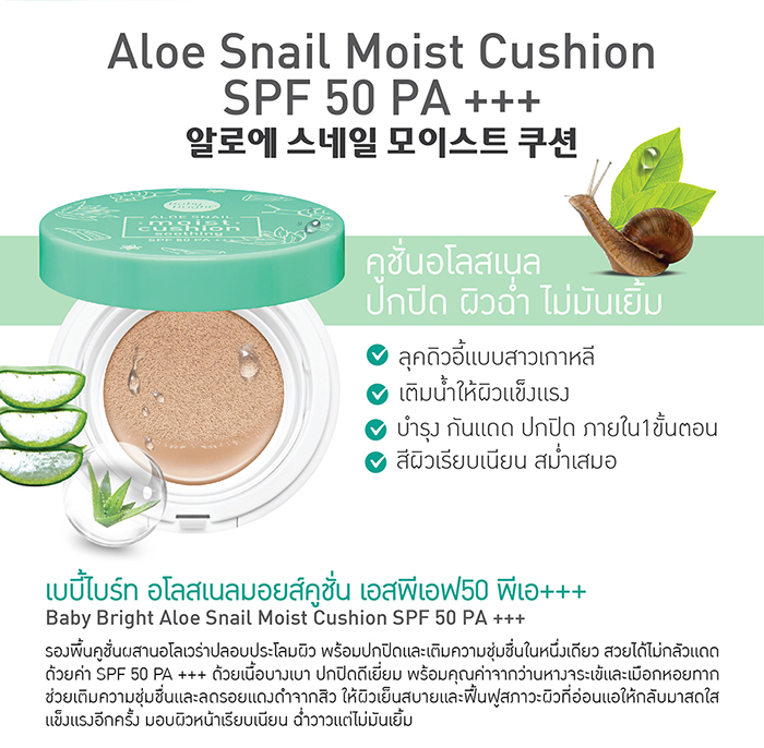 Aloe Snail Moist Cushion SPF50 PA+++ Baby Bright #23 Natural Bright 6 gr. Thailand