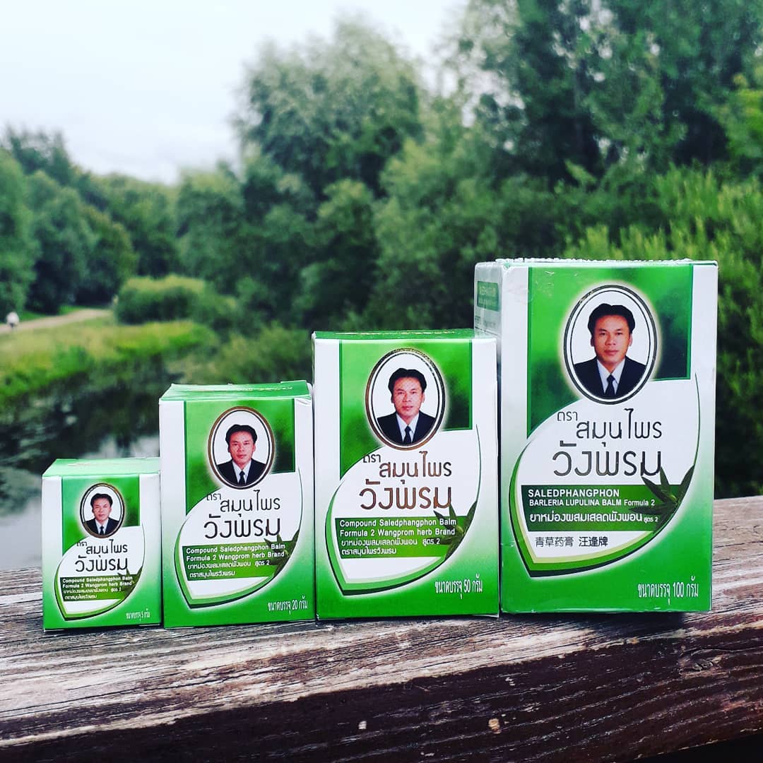 Традиционный зеленый бальзам «Травы доктора Вангпрома» на основе лекарственных Тайских трав волчья барлерия и клинакантус поникающий, которые используются народной медициной. Пионер среди продуктов компании WANGPROM HERB, выпускаемый на протяжении многих лет и повсеместно применяемый в массажных целях. Обладает высокой активностью при мышечных и суставных болях разного характера. Подходит для массажа и растирания.