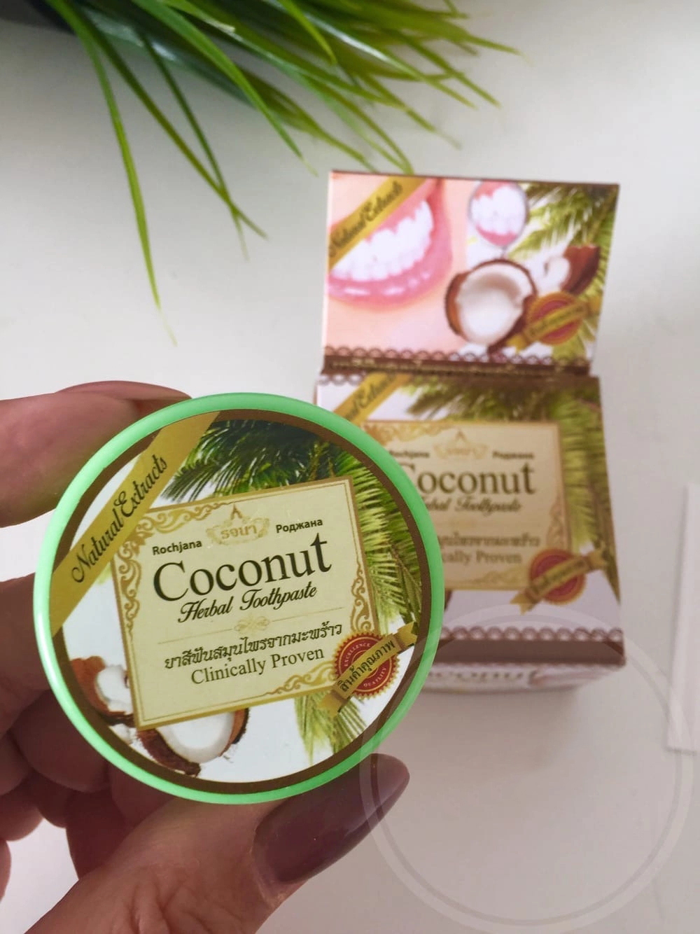 Органическая отбеливающая зубная паста из Таиланда со вкусом кокоса Rochjana - (coconut herbal toothpaste) - это разница, которую Вы почувствуете сразу после использования! Эта паста не содержит в своем составе химических компонентов - красителей, подсластителей, ароматизаторов поэтому полностью безопасна и полезна.